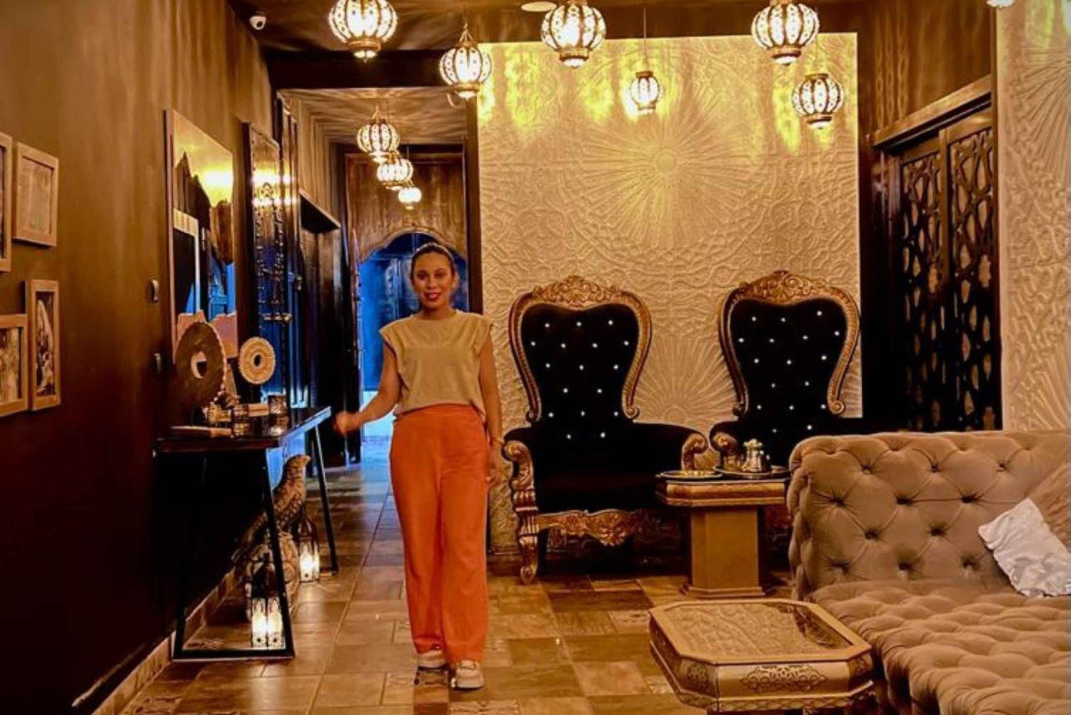 Похоже, у вас есть замечательный план расслабляющего и омолаживающего отдыха в хаммаме! Вот как можно структурировать описание: Побалуйте себя спокойным посещением хаммама Ваш день начинается с плавного трансфера из отеля в хаммам, где вы встретите своего гида. По прибытии погрузитесь в безмятежную атмосферу и пообщайтесь со знающими женщинами-профессионалами, которые управляют хаммамом. Они проведут вас на каждом этапе вашего путешествия побаловать себя. Марокканская баня: глубокое очищение и отшелушивание Сначала побалуйте свою кожу роскошной 45-минутной марокканской ванной. Этот традиционный ритуал глубоко очищает и отшелушивает, делая кожу невероятно мягкой и эластичной. Это идеальный способ расслабиться и подготовиться к следующему этапу релаксации. Персонализированный массаж для максимального расслабления После ванны насладитесь 45-минутным массажем, адаптированным к вашим предпочтениям и потребностям. Независимо от того, предпочитаете ли вы нежные поглаживания для снятия напряжения или более глубокие техники для активизации мышц, ваш терапевт позаботится о том, чтобы вы почувствовали себя полностью расслабленным и обновленным. Насладитесь марокканским чаем в спокойной обстановке После массажа найдите минутку, чтобы насладиться ароматами Марокко за чашкой традиционного марокканского чая. Наслаждайтесь этим успокаивающим опытом в безмятежной обстановке, позволяя расслаблению продлиться. Вернитесь в свой отель По окончании посещения хаммама ваш гид сопроводит вас обратно в отель, гарантируя, что вы уедете отдохнувшими, помолодевшими и готовыми продолжить путешествие с новыми силами. Это описание отражает суть каждого этапа вашего пребывания в хаммаме, от прибытия до отъезда, подчеркивая спокойную атмосферу и индивидуальный подход, который вы получите на протяжении всего процесса.Includes