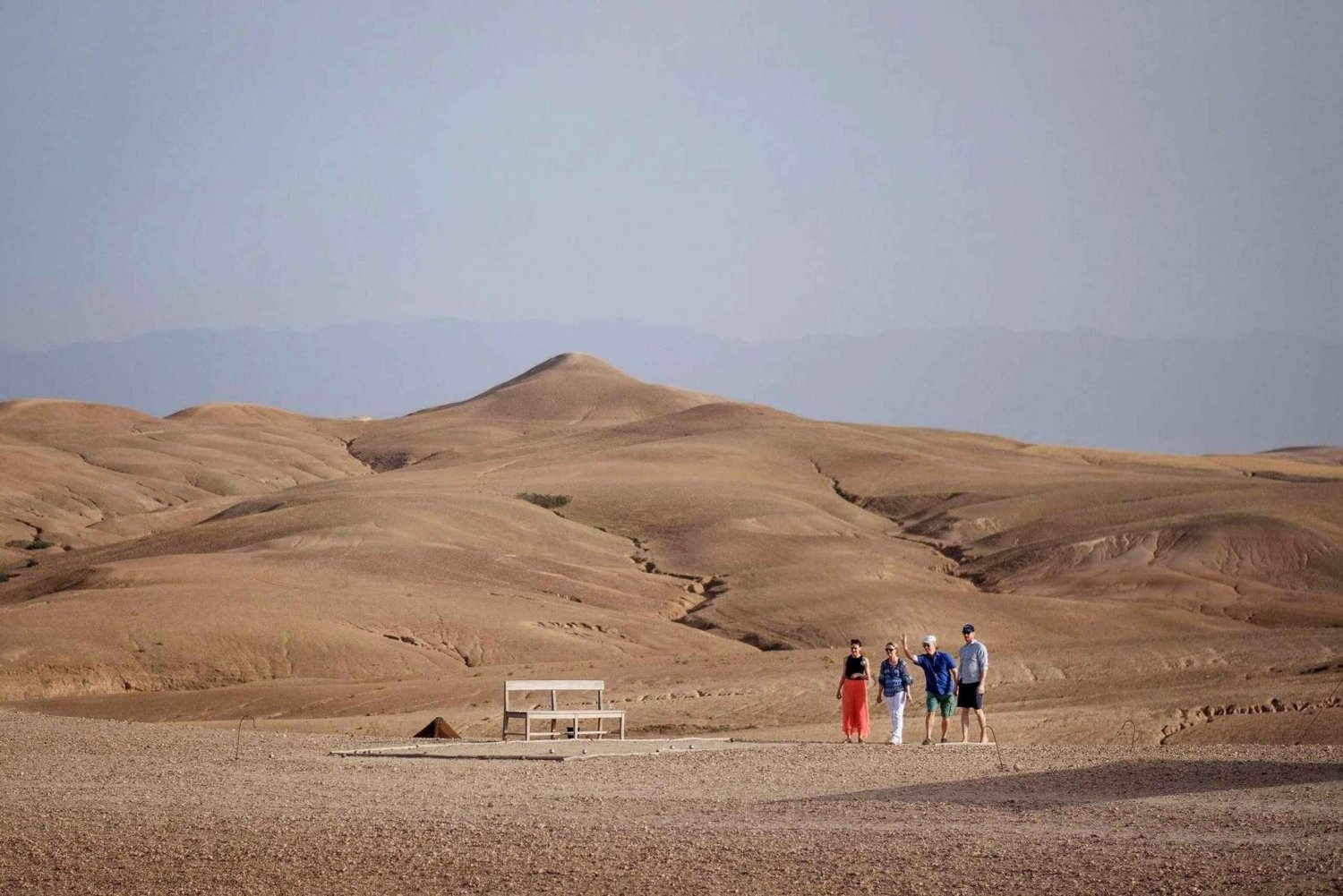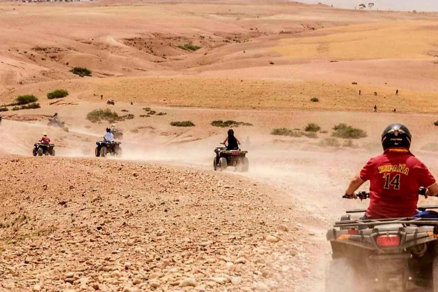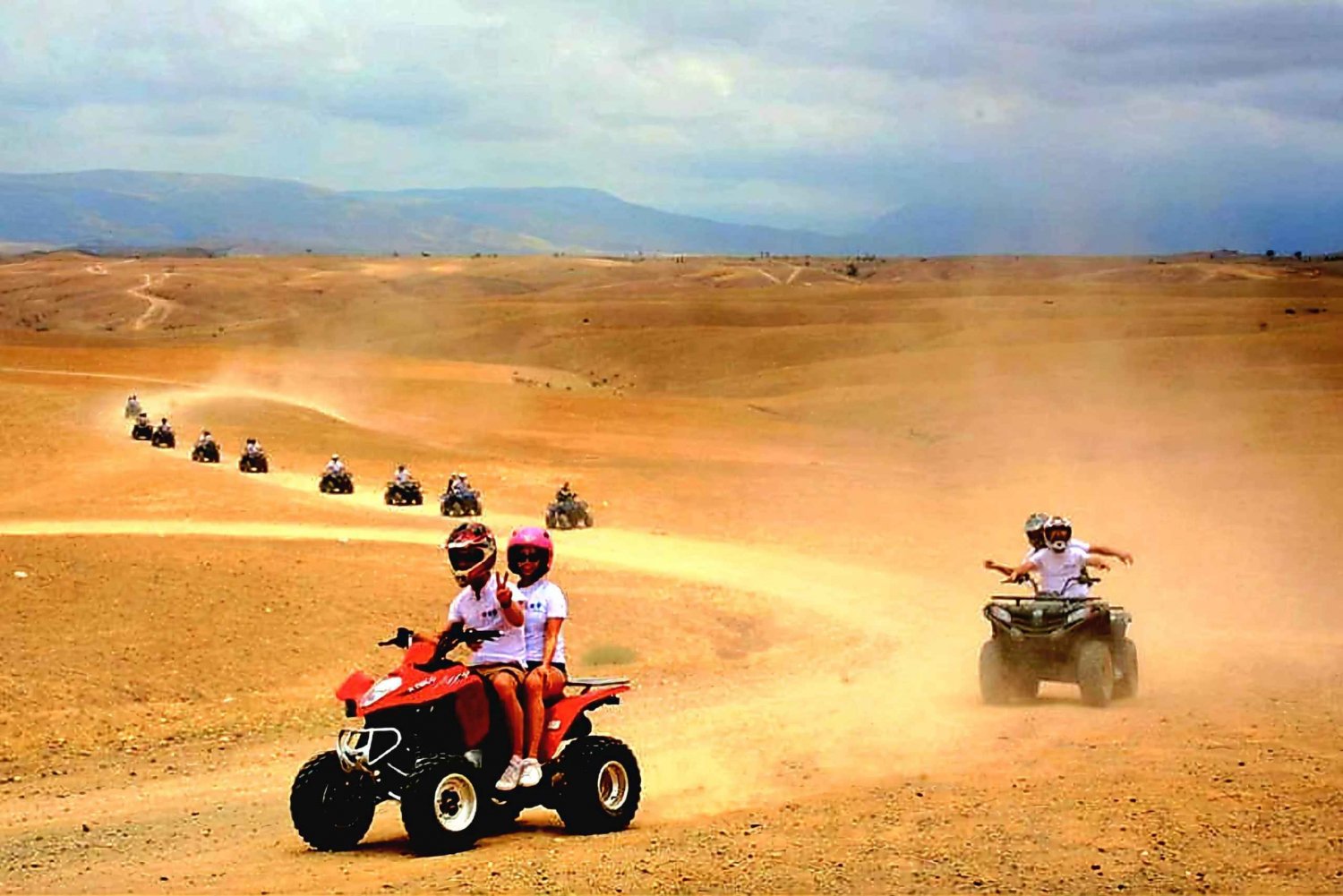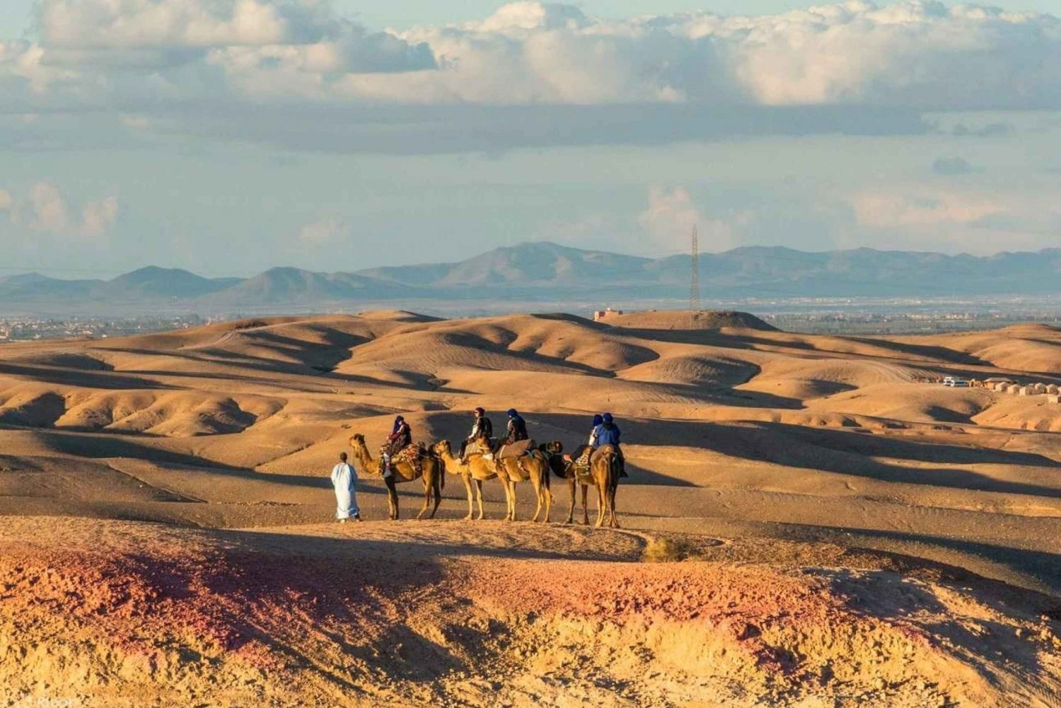 Отправьтесь в приключение по обширной скалистой пустыне Агафай в рамках экскурсии на полдня. Вас встретят профессионалы и отвезут от вашего жилья или места встречи в Марракеше. Встретьтесь с нашими замечательными гидами, которые проведут вас через этот культурный опыт. Прокатитесь на верблюде до плато и насладитесь прекрасным моментом и свободой широких просторов. Сделайте несколько художественных фотографий с верблюдом, узнав о марокканской кочевой одежде и культуре. Погрузитесь в свежий воздух и захватывающие природные пейзажи пустыни Агафай. Затем присоединитесь к команде квадроциклов, чтобы научиться управлять квадроциклом и получить инструкции по использованию оборудования. После обеда вы вернетесь в Марракеш с прекрасными воспоминаниями.Includes