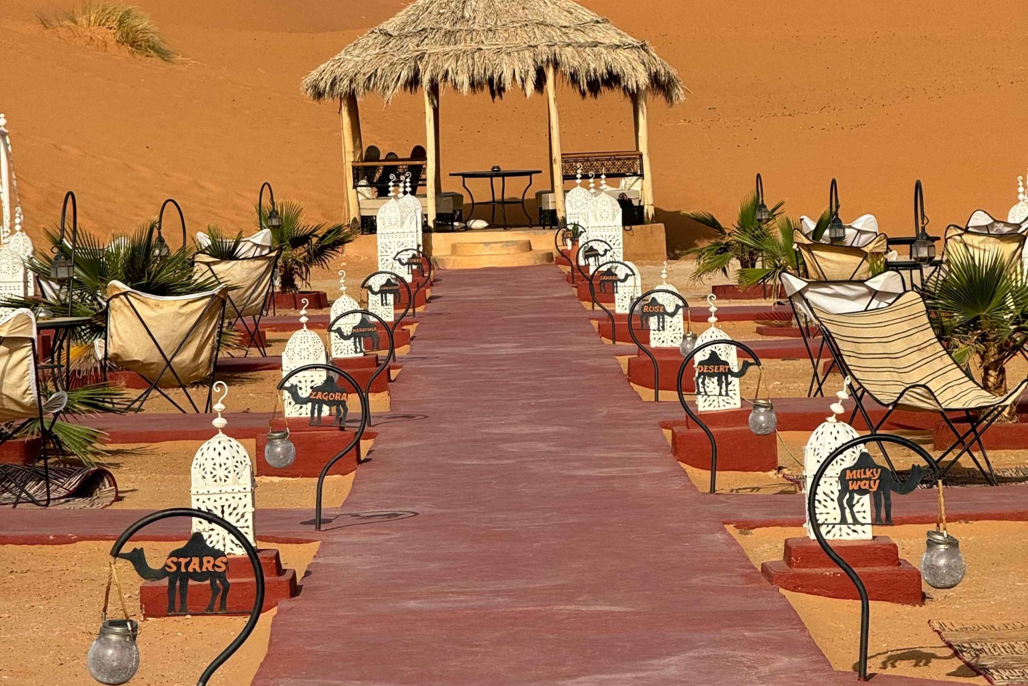 Upphämtning i Marrakech vid ditt hotell eller riad mellan kl. 7 och 8. Luftkonditionerad transport med fyrhjulsdriven bil eller minibuss. Bränsle, vägtullar och alla tillhörande kostnader. Kunnig lokal chaufför som följer med dig under hela resan. Övernattning i privat hotellrum/svit med luftkonditionering och badrum. Frukost och middag. Möjlighet att prova traditionella berberkläder och henna. En natt i öknen. Kamelridning vid solnedgången och soluppgången genom Erg Chebbi-sanddynerna. 1 timmes fyrhjuling i Saharaöknen för 2 personer i en fyrhjuling vid soluppgången. Pool. Sandboarding på egen hand i lägret. Återkomst till boendet i Marrakech mellan kl. 17 och 19.Important Information
