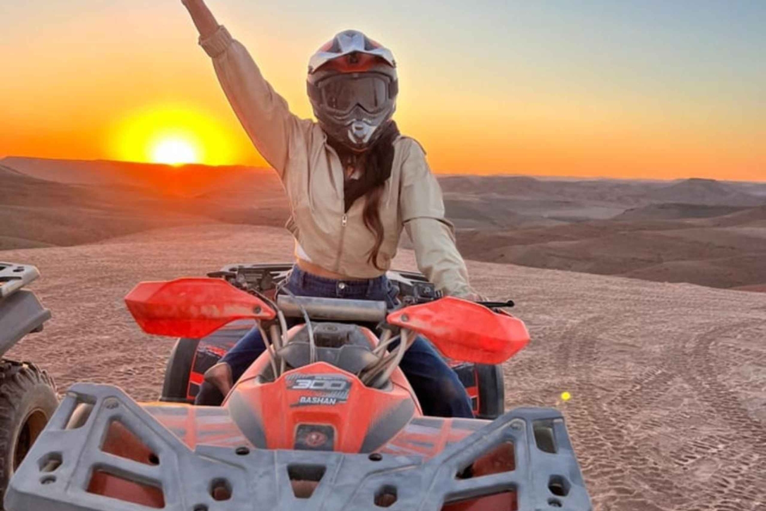 Agafay-tur med fyrhjuling, solnedgång och romantisk middagsshow