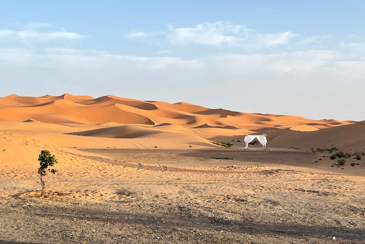 Transport med luftkonditionering: Upphämtning och avlämning vid ditt hotell 2 nätter med halvpension (middag och frukost) Övernattning i ett lyxtält i ökenläger, En kamelritt in i Saharaöknen Musikföreställningar runt lägerelden Autentisk marockansk mat: 2 frukostar och 2 middagar Sandboarding: Deltagarna får gratis sandboarding-utrustning för sin ökenupplevelse (be om den på lägret) övernattning på ett charmigt hotell i Ouarzazate Hotel Rose Valley eller liknandeEasy cancellation
