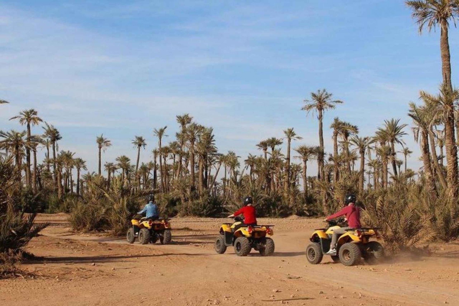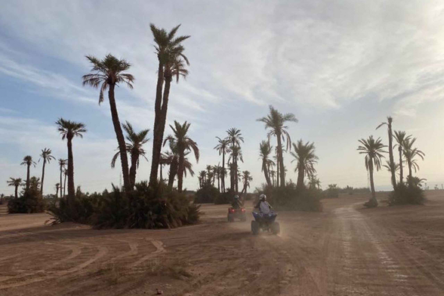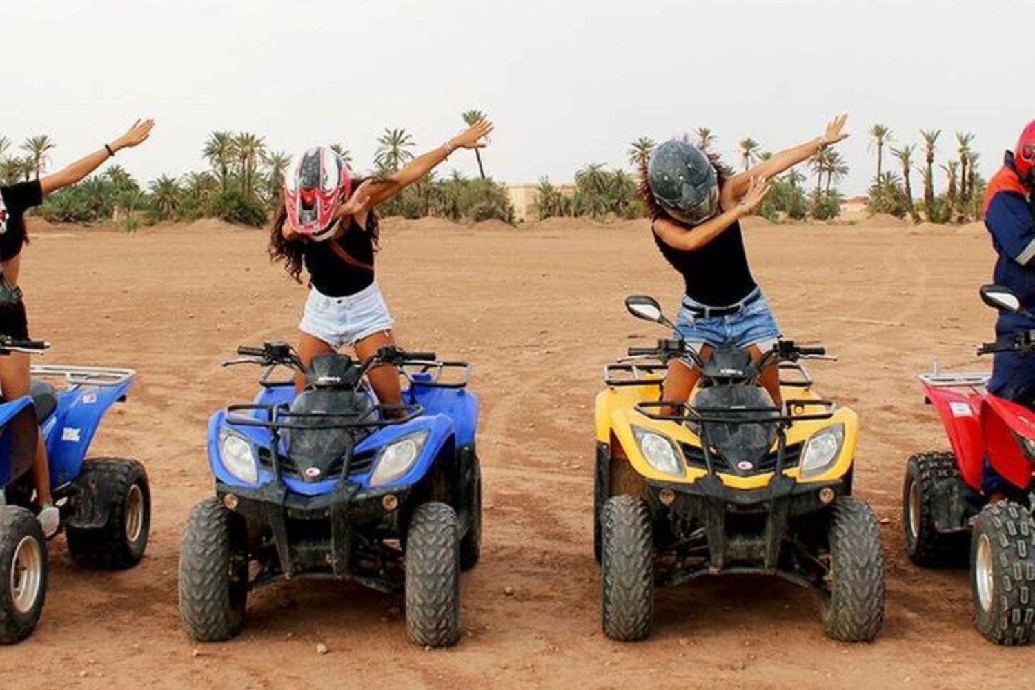 Börja resan med upphämtning från hotell, lämna sedan Marrakech och kör mot Agafayöknen. Stanna vid Argan Oil Women's Cooperative för chansen att träffa dessa hårt arbetande kvinnor och observera de traditionella teknikerna Njut av en avkopplande kamelridning genom den fridfulla Agafayöknen. av mot en lugn del av öknen som är fylld med vackra kullar som går så långt som till horisonten. Bli upphämtad från ditt hotell i Marrakech och åk mot öknen med en förare och ett team. Hör om hur fyrhjulingen är utomordentligt anpassad till livet i öknen på vägen dit. En instruktör kommer att vara där för att ge råd och hjälpa dig att komma igång. Ta in det magnifika landskapet när du hoppar upp på dessa underbara varelser. Njut av en utomhuspool för simning. Efter en utsökt lunch serveras under ett tält i ökenlägret. Smaka på det lokala köket med marockanska rätter, inklusive tagines, couscous och grillat kött. Njut av det perfekta sättet att avsluta en dag full av äventyr och utforskning.Includes