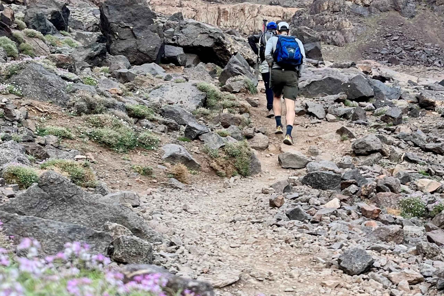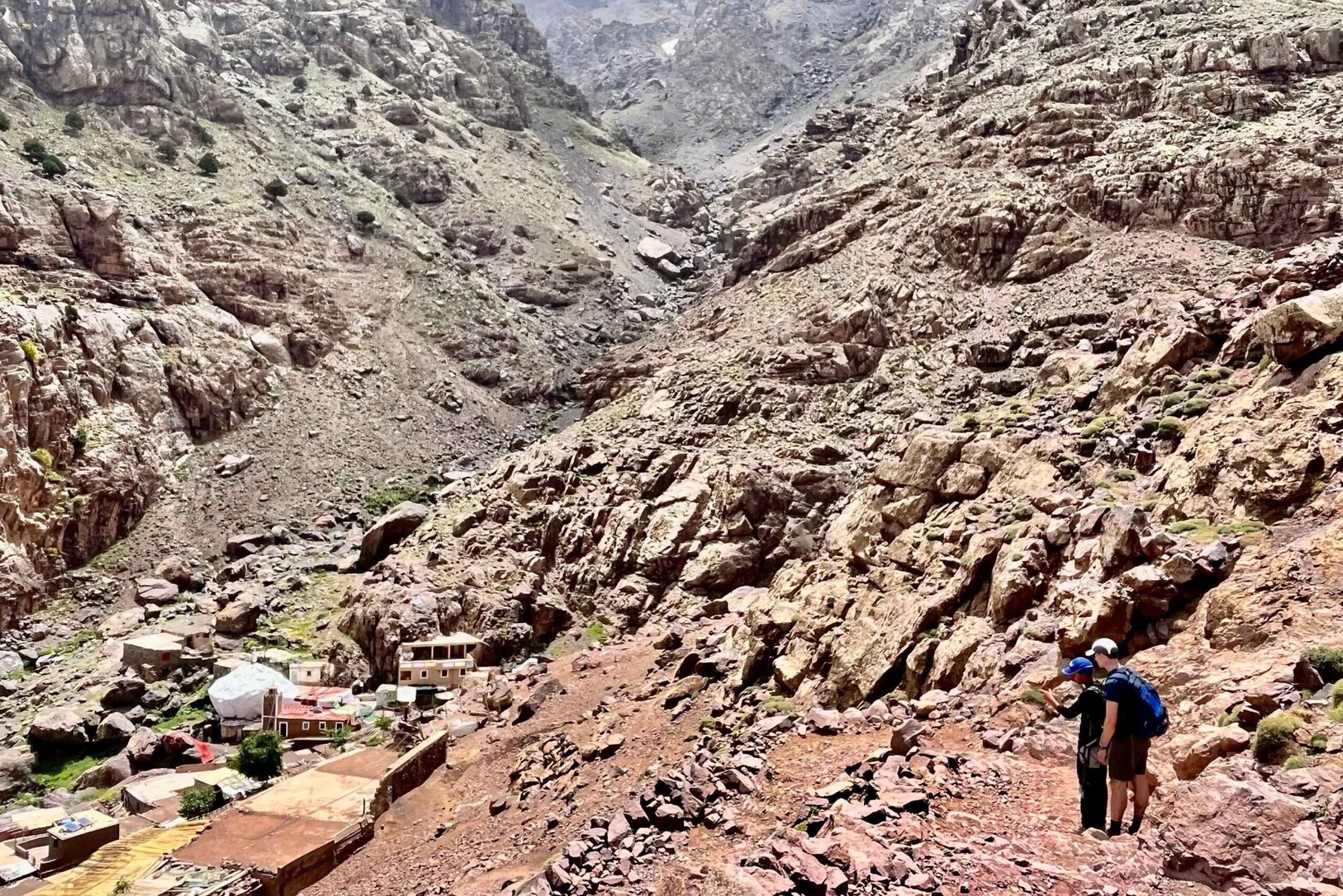 Dag 1: Marrakech Ankomst till Marrakech flygplats och transfer till ditt hotell. Dag 2: Marrakech – Toubkal – Amssakrou Åk till Toubkal och träffa dina mulor. Åk sedan till Amssakrou-floden, innan du bivackar på 1 500 m. Hela dagen kommer att innebära cirka tre timmars promenad. Dag 3 och dag 4: Amssakrou - Imnan-dalen - Ikis - Tameguiste - Tachdirt Tillbringa dag 3 och 4 med att vandra längs Imnan-dalen och utforska byarna Amssakrou, Ikis, Tameguiste och Tachdirt. Träffa de vänliga invånarna och börja se hur berberna lever sina liv. Dag 5: Tachdirt – Tamaterte-passet – Imlil-dalen – Aremd Korsa Tamaterte-passet på 2 279 m innan du går in i Imlil-dalen (1 750 m) och tillbringa natten i byn Aremd, i ett lokalt pensionat på 1 950 m. Totalt bör det handla om cirka 5 timmars promenad. Dag 6: Aremd – Tizi Mzzik – Assif N'Azadene Efter att ha vandrat längs en mulåsneled, ansluter du dig till Tizi Mzik på cirka 2 490 m och får en glimt av den snötäckta Tazarat-platån och dess byar med hängande terrassgårdar i kullarna. Efter 4 timmars resa, tillbringa dagen i dalen Assif N'Azadene. Dag 7: Assif N'Azadene – Imi Oughlad – Marrakech Gå längs ett litet bergspass som tar dig till byn Imi Oughlade, och lämna tyvärr Azzadene-dalen, en av de vackraste platserna i Höga Atlasbergen. När du anländer till Imi Oughlade hittar du privata fordon för dig och ditt sällskap, som sedan tar dig hela vägen till Marrakech. Dag 8: Marrakech Transfer till flygplatsen och avresa.Includes