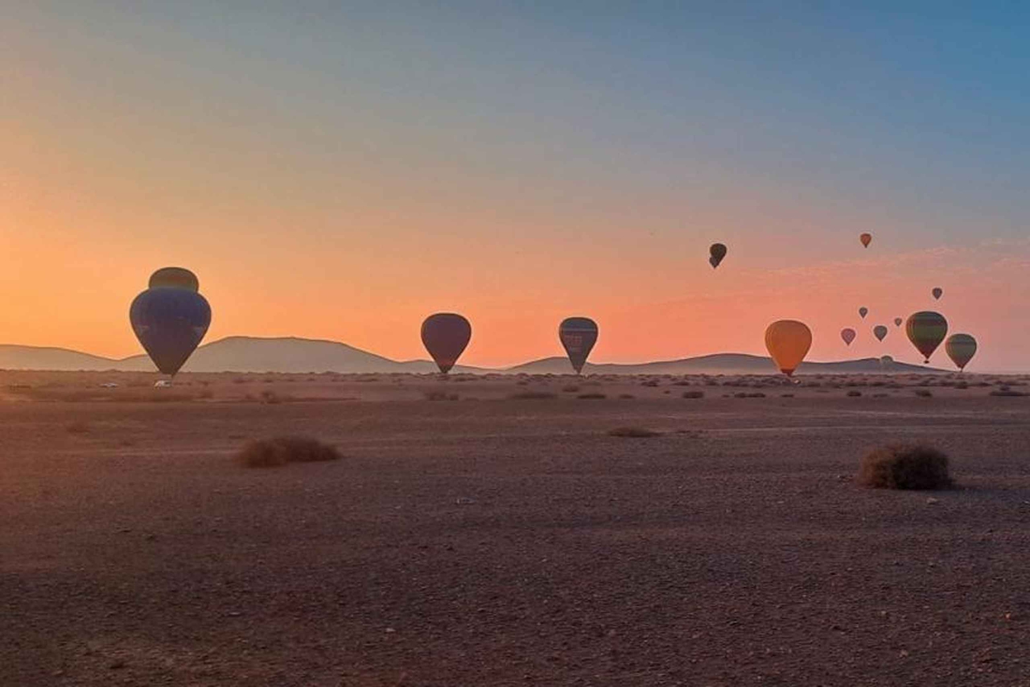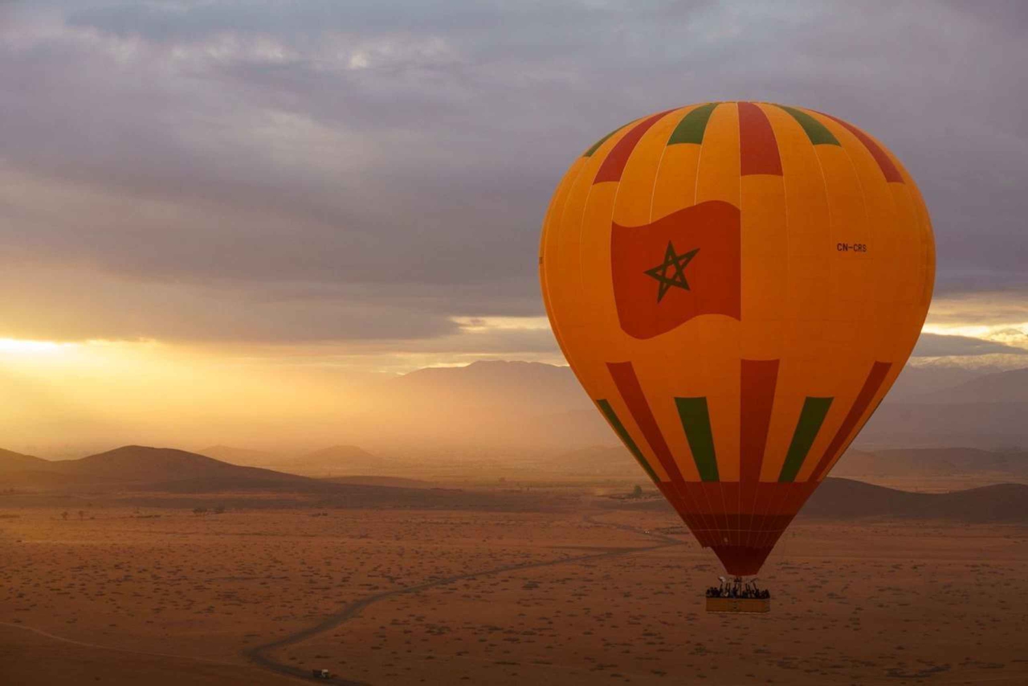 Drift peacefully through the skies above the Atlas Mountains on a hot air balloon ride And Embark on a comprehensive adventure package that includes it all. Start with a convenient hotel pickup and meet our experienced pilot and crew at the launch site. Enjoy a serene hot air balloon journey with breathtaking panoramic views. Upon landing, receive a pilot-signed flight certificate. Delight in a freshly prepared Berber breakfast. Extend the excitement with a camel ride included through the famous palm-dotted desert. Return to your hotel comfortably, cherishing the memories of an exceptional day filled with adventure and exploration.Includes