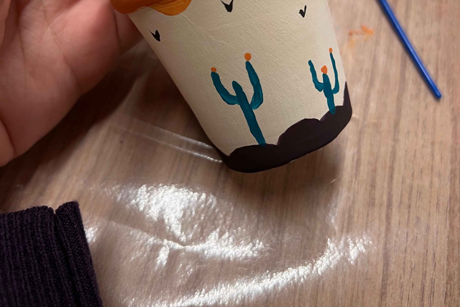 Om du är ute efter en lugnande upplevelse har vi skapat ett brett utbud av keramikföremål för att skapa minnen, uttrycka dig själv och upptäcka din talang. Så här fungerar det: 1. Boka din plats nedan. 2. Välj din vita keramikbit med en höjd på 11 cm och en diameter på 7 cm, du kan också köpa andra större bitar på plats som vas, karaff ... 3. Måla ditt verk med ett vänligt team som hjälper dig. 4. Låt ditt föremål stå i 2 dagar för att glaseras och brännas i ugnen så att det blir fullt funktionsdugligt. 5. Du hämtar den emaljerade delen två dagar efter workshopen.Includes