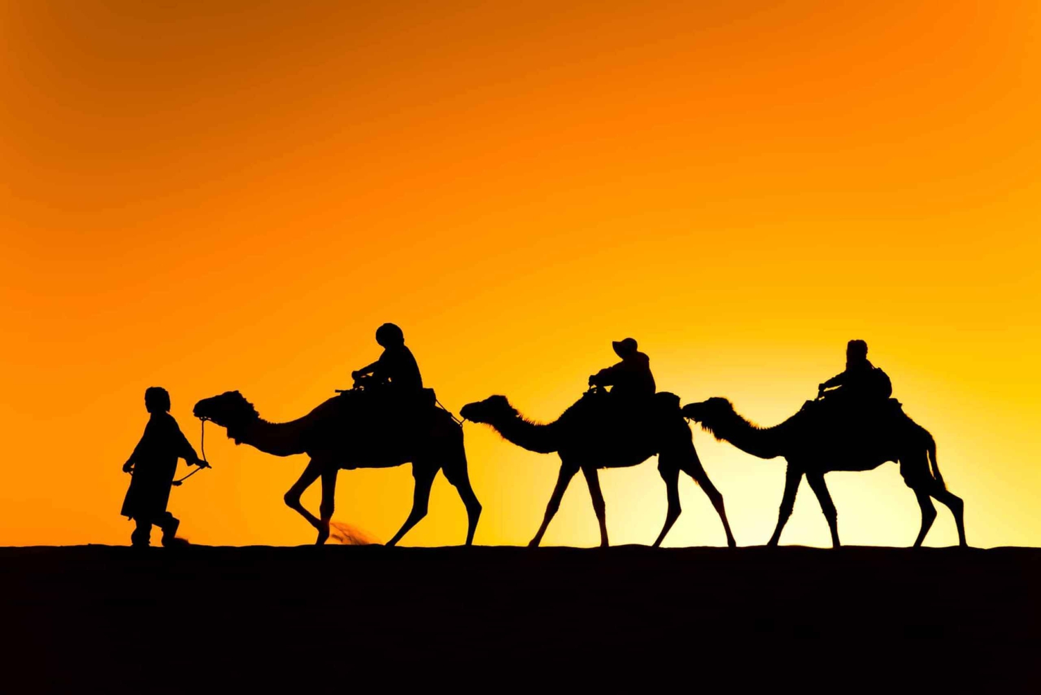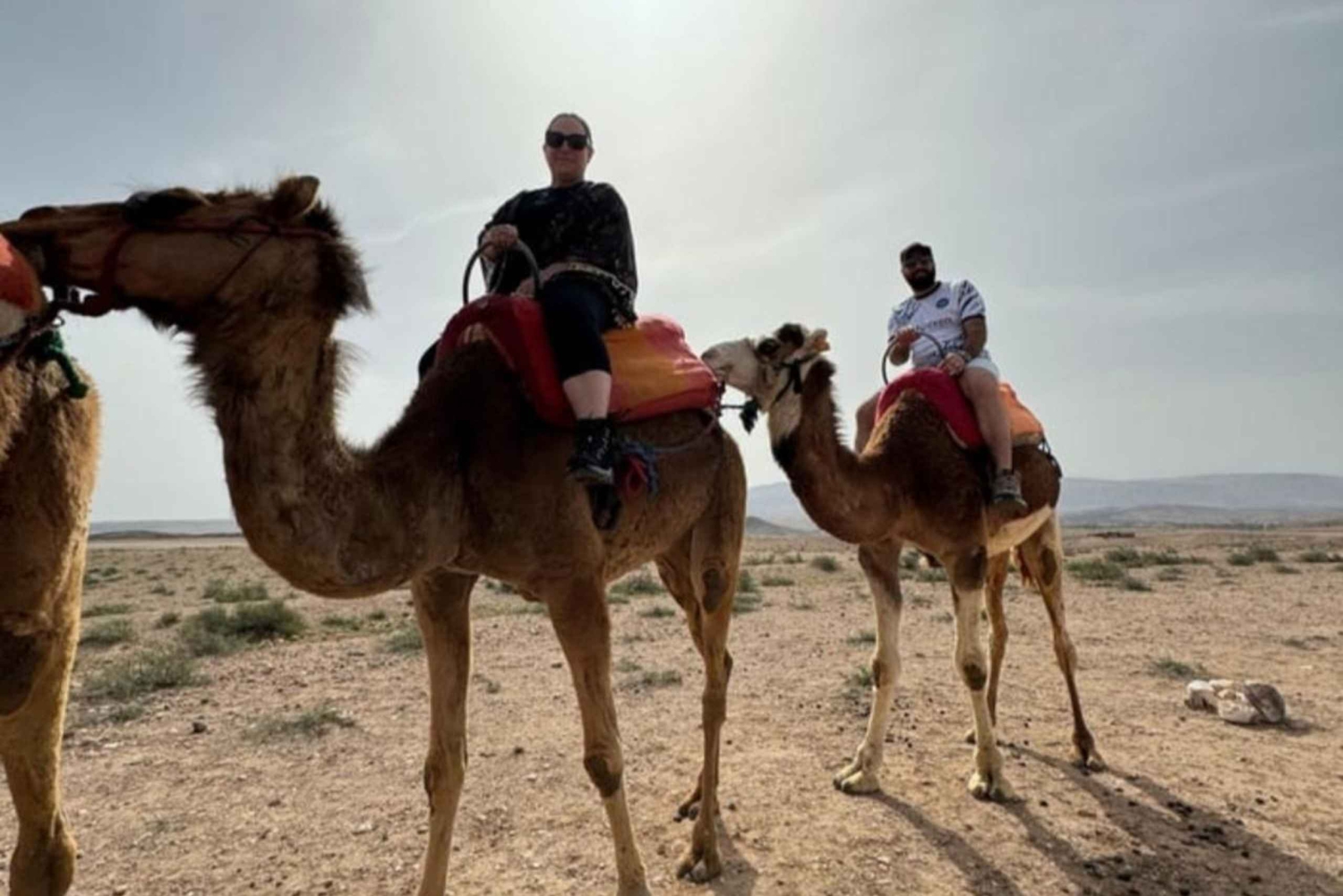 Ge dig ut på en spännande äventyrskväll i Agafayöknen. Börja din utflykt med att lämna Marrakech, bli upphämtad från ditt hotell eller riad i Marrakech med en transfer och åk på en naturskön bilresa till öknen, med en fantastisk utsikt över High Atlas Mountains. Du behöver inte resa hela vägen till Sahara för att se en solnedgång i öknen, den här turen sparar dig Sahara-upplevelsen, väl där kommer du att njuta av en upplevelse med en rad äventyrsaktiviteter, inklusive kamelridning och fyrhjuling genom öknens sanddyner. Ta fantastiska bilder av det omgivande området, inklusive landskapet med de snötäckta Atlasbergen. Efter ridturen äter ni en typisk middag som serveras under bar himmel och lyssnar på levande musik, bland annat traditionell berberdans och elddansare. Efter denna oförglömliga kväll körs du tillbaka till Marrakech.Includes